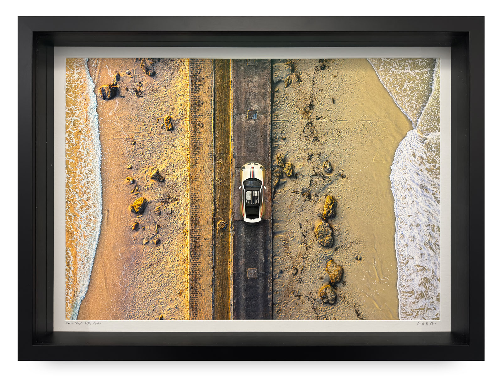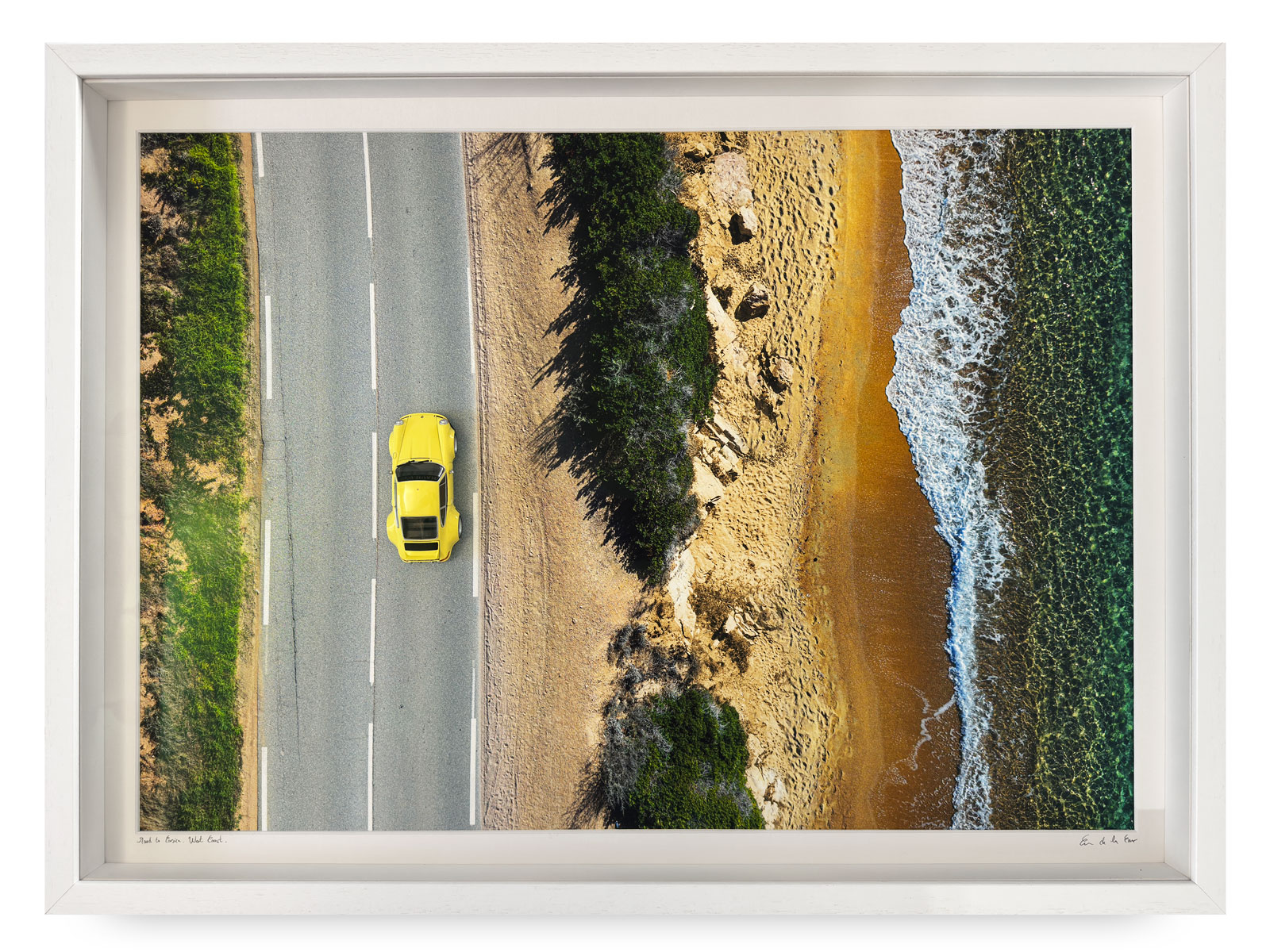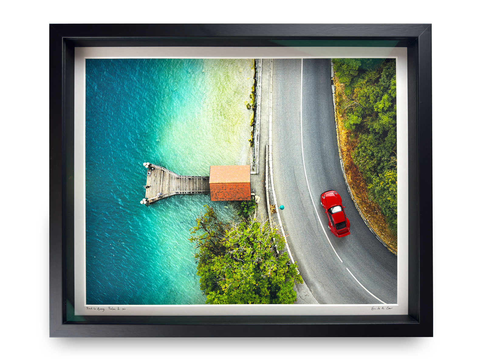 Une miniature de collection est aimantée sur la photo, un cadre vitrine équipé d’un verre anti-reflets protège l’ensemble de l’œuvre. Le cadre est en bois brut, fabriqué en France et disponible du A4 au 100×70.