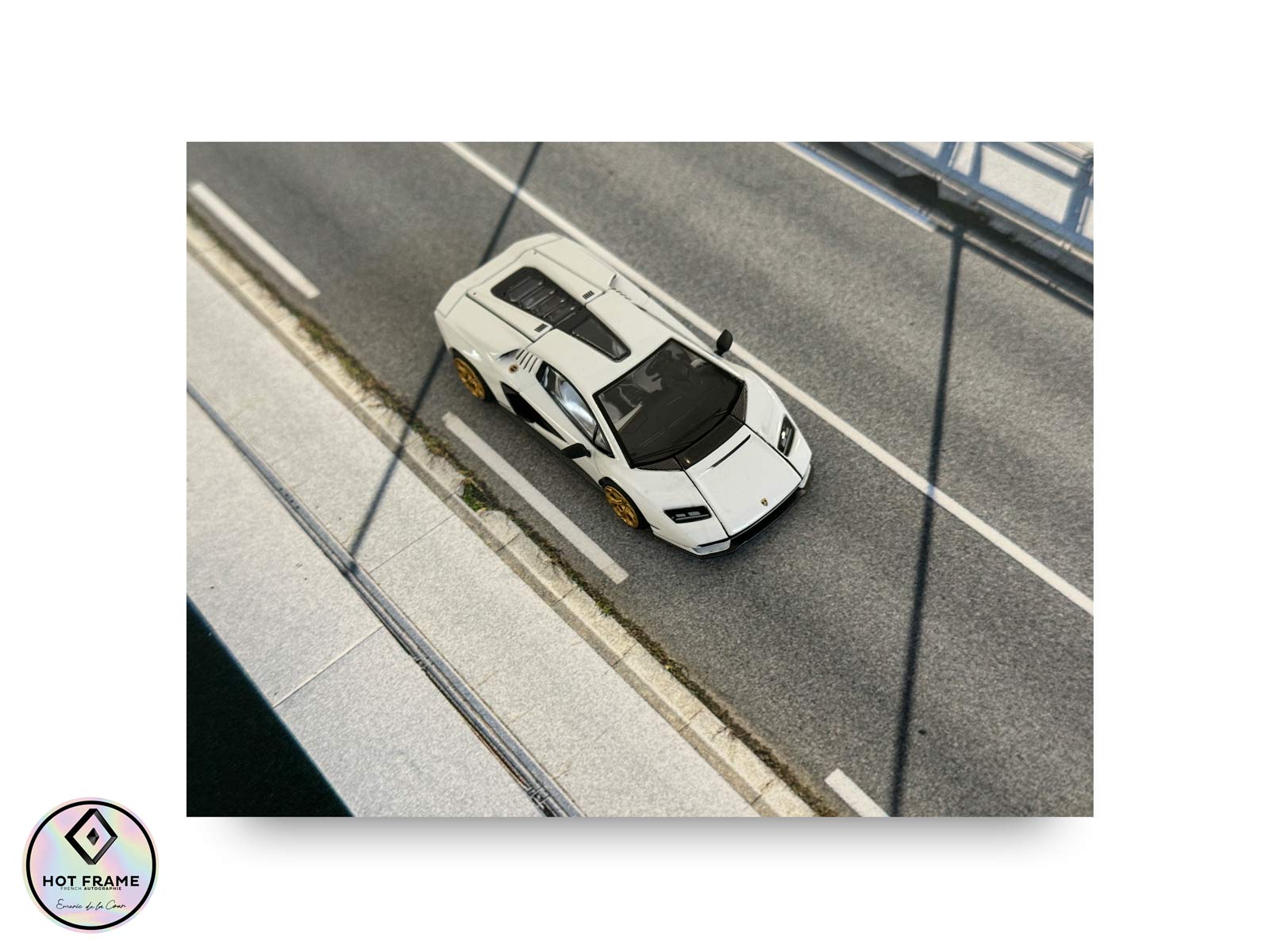Sur le pont du Liamone, en Corse, une Lamborghini Countach contemporaine s’inscrit dans le paysage avec une évidence presque troublante.